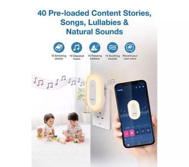 Highlights USB rechargeable Small + easy to take with you Stand, clip or strap it out of reach Hour mode or 10hr all-night mode Surrounds your baby...