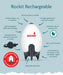 The Rockit Rocker Rechargeable - Portable Baby Rocker Now rechargeable with a rotatable bracket. Created to help parents on the go, this handy must-have accessory keeps babies moving and snoozing. Simply attach to a pram or stroller, push the button, and adjust the speed to gently rock baby. The Rockit uses a gentle rocking motion to safely soothe baby. Scientific tests show the vibration level closely mimics the normal hand rocking of a pushchair and the soothing movement is gentler than a pushchair moving over paving stones. Product features: USB rechargeable - lithium battery 60-minute shut-down timer New Bracket - easier to fit and remove with new thumb-wheel system (also fits the Rockit v1) Fits all makes of strollers and prams Can be fitted on the side bar or the top handle Rotates so the Rockit can always be vertical making it more efficient and allowing a slower rocking speed and better battery life Quiet motor with adjustable speed One charge lasts approx. 12-20 hours (depending on speed used, temperature etc) Showerproof - use inside and out Safe to use from birth Rockit out and about: With baby content in the pushchair, parents can enjoy a coffee in peace or manage the supermarket checkout with both hands. Rockit at home: Rockit helps avoid late night walks around the block or long treks to keep baby asleep. -